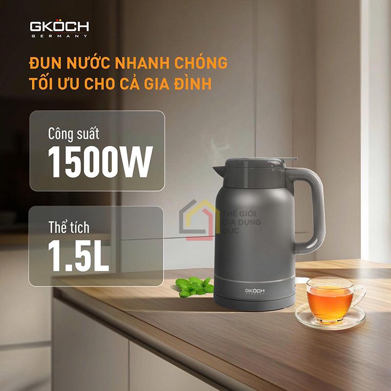 Trong cuộc sống hiện đại, một chiếc ấm đun nước không chỉ cần đun sôi nhanh mà còn phải an toàn, tiết kiệm thời gian và tiện lợi tối đa. Ấm đun giữ nhiệt GKÖCH 2in1 1,5L ứng dụng công nghệ Đức tiên tiến, tích hợp hoàn hảo hai chức năng đun sôi thần tốc và giữ nhiệt lâu dài, mang đến giải pháp toàn diện cho mọi gia đình.