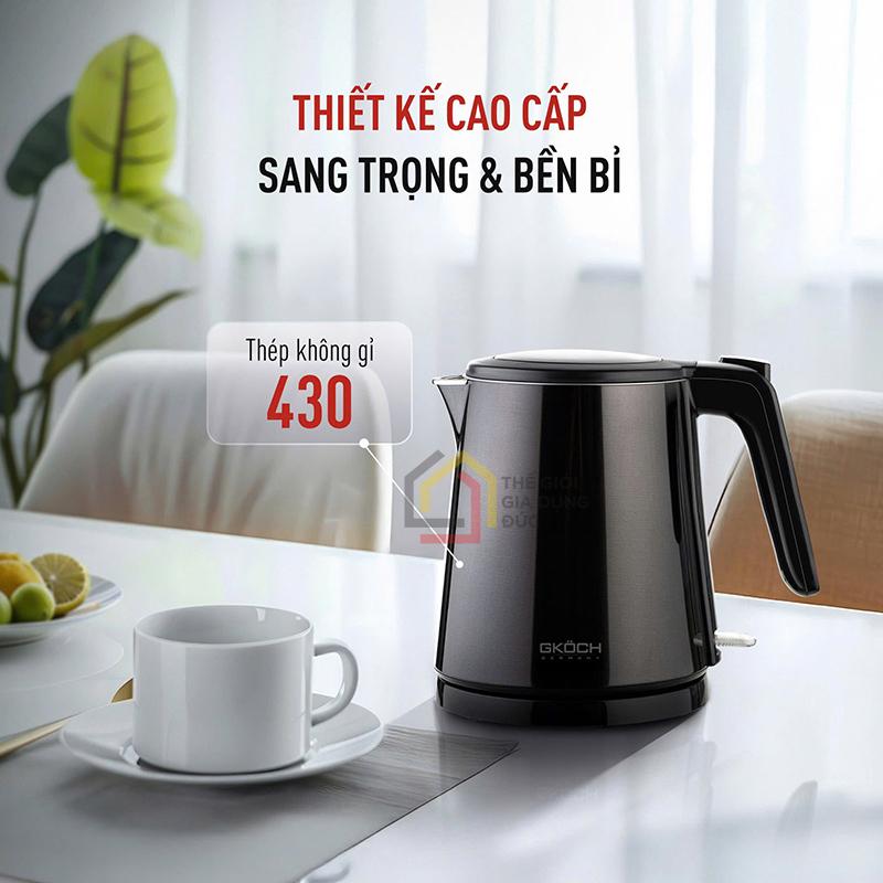 Ấm siêu tốc GKÖCH gây ấn tượng với gam màu đen sang trọng, mang phong cách thiết kế tinh tế chuẩn Âu, dễ dàng phù hợp với nhiều không gian bếp khác nhau.