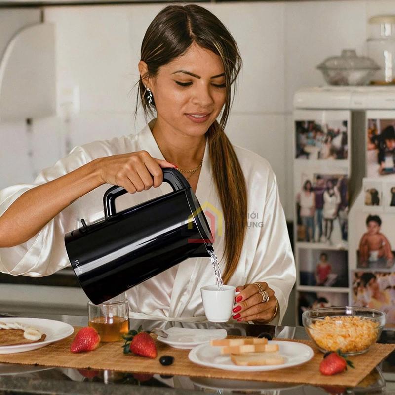Ấm siêu tốc Steiger STG9238/B mang phong cách Nordic Minimal với dáng thẳng tinh tế, bề mặt đen bóng hiện đại. Phù hợp với nhiều không gian bếp từ cổ điển đến hiện đại tạo điểm nhấn thẩm mỹ cao cấp cho căn bếp gia đình.
