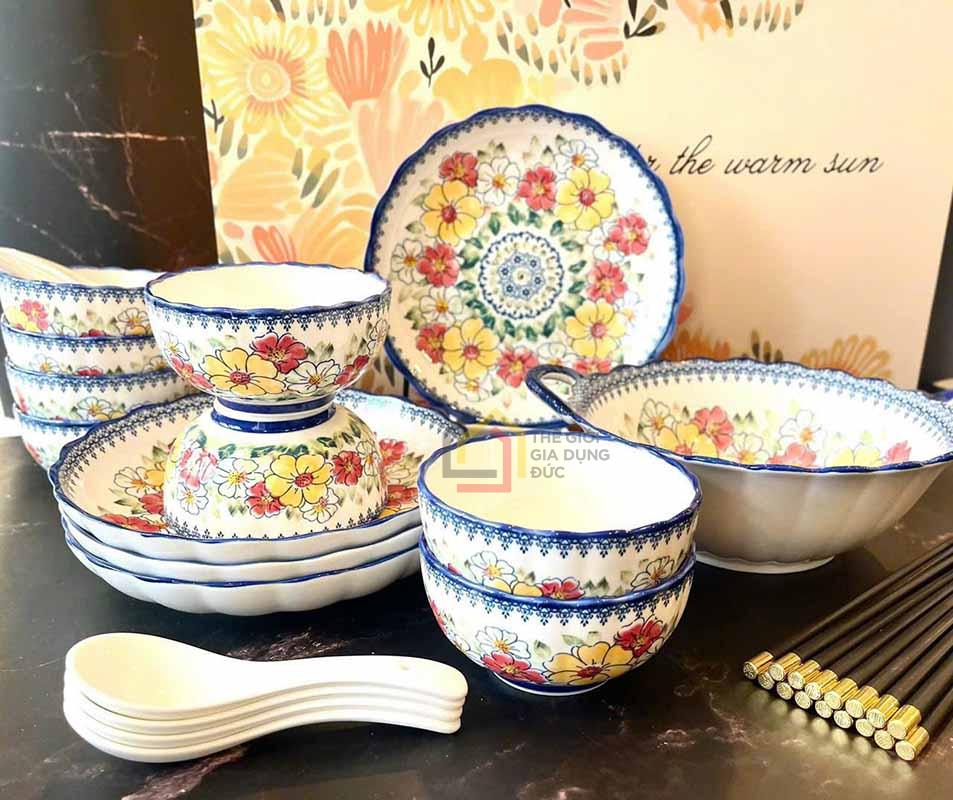 – Bộ sản phẩm đầy đủ tiện nghi: Gồm 8 bát, 8 thìa, 8 đôi đũa, 4 đĩa và 1 bát tô, đáp ứng trọn vẹn nhu cầu sử dụng hằng ngày.