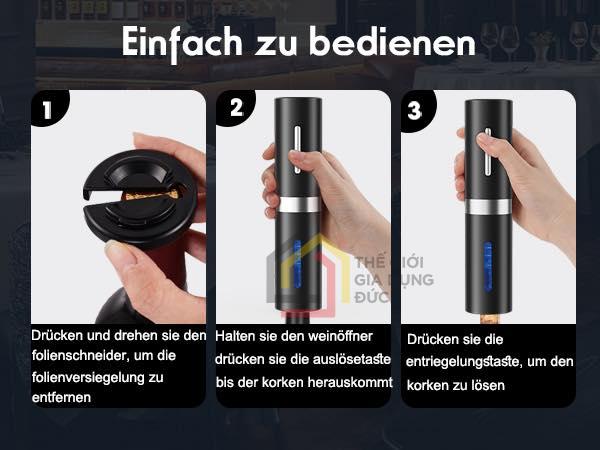 - Khui rượu tự động: Chỉ với một nút bấm, tháo nút bần trong vòng 7 giây.