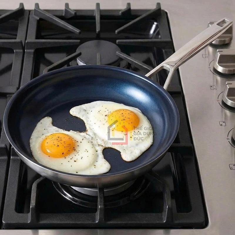 Chảo chống dính Steiger Steelcore cho phép chiên trứng trơn mượt, không dính và không vỡ. Khi rán cá, bề mặt da vẫn giữ nguyên, không bong tróc hay bám chảo. Nhờ đó, món ăn luôn giữ được hình thức đẹp mắt và hương vị trọn vẹn.