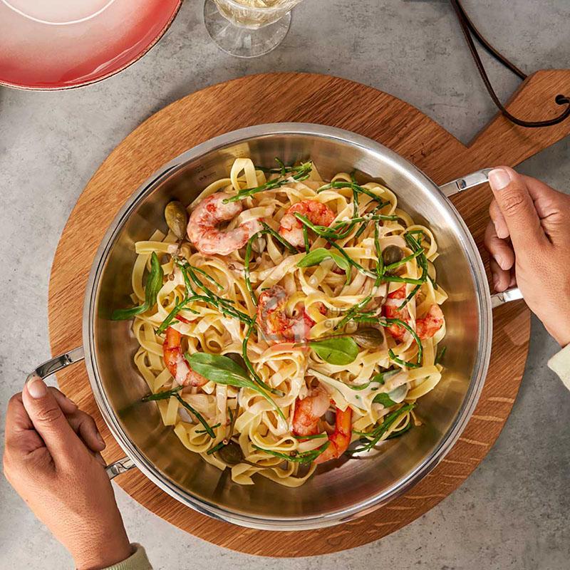 Chảo Fissler Profi có thể dùng để chiên, rán, xào và sử dụng trong lò nướng lên đến 230°C. Ngoài ra, sản phẩm còn an toàn với máy rửa chén, giúp tiết kiệm thời gian vệ sinh.