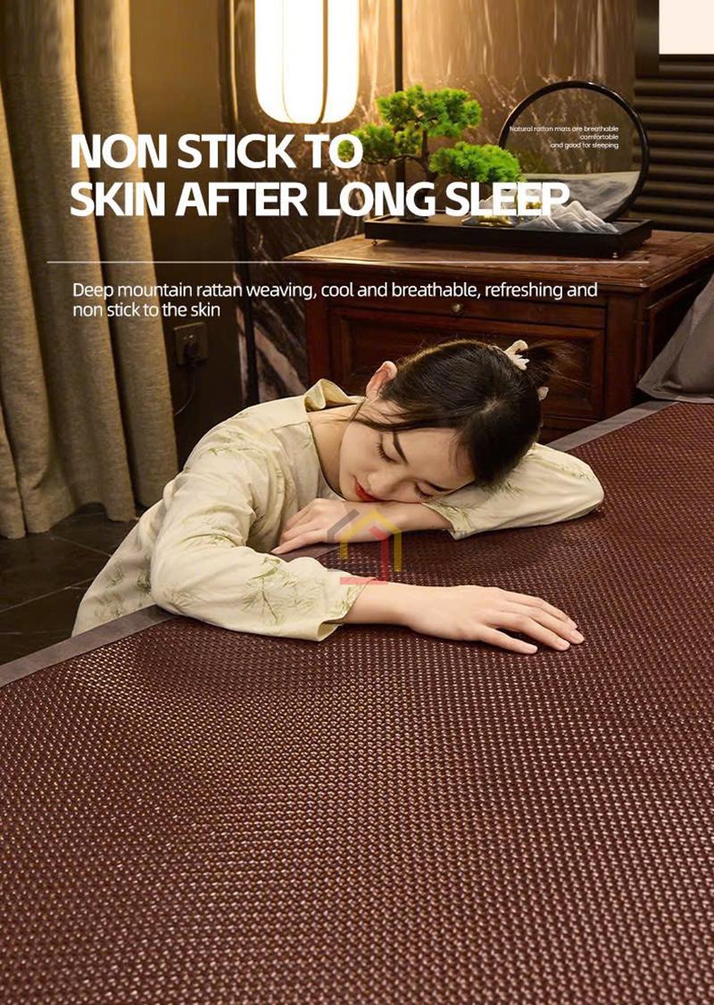 Chiếu được làm từ sợi mây cao cấp, mang lại cảm giác mát lạnh ngay khi tiếp xúc. Bề mặt mềm mại, êm ái giúp người dùng thư giãn và ngủ ngon hơn trong những ngày hè oi bức.