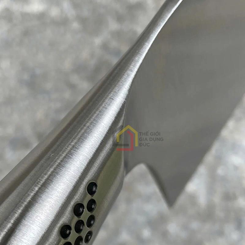 - Thiết kế liền khối: Thân và cán dao được đúc nguyên khối, chắc chắn, cân bằng nhờ tay cầm rỗng chứa cát.