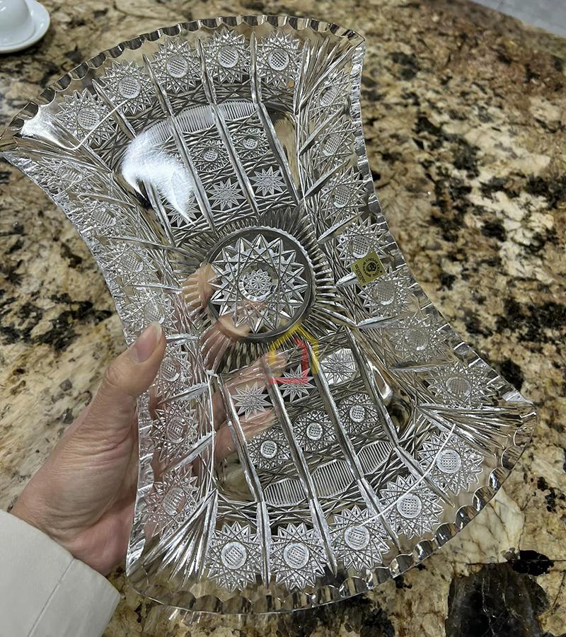 Đĩa eo pha lê mài Bohemia 30cm bày gì cũng sang, đẹp trên bàn ăn, bàn tiệc, bàn trà…