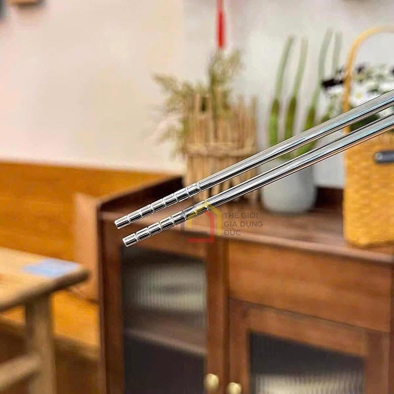 – Đầu đũa có rãnh: Thiết kế chống trơn trượt, dễ dàng gắp thức ăn mà không lo trượt tay.