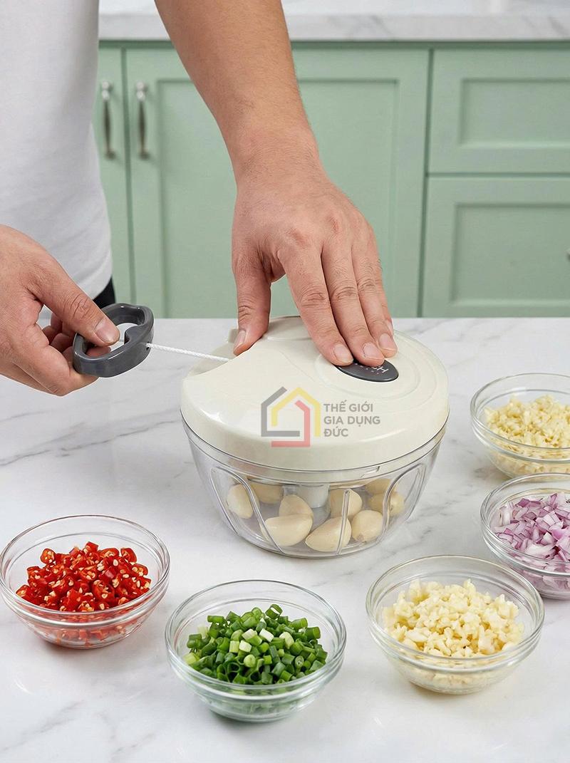 Dụng cụ xay tỏi ớt GKÖCH 400ml là trợ thủ đắc lực cho căn bếp gia đình, giúp sơ chế nguyên liệu nhanh gọn chỉ với vài nhịp kéo. Thiết kế nhỏ gọn, dễ sử dụng hằng ngày, phù hợp cho mọi đối tượng từ người nội trợ đến người bận rộn. Cơ chế kéo tay thông minh giúp xay nhuyễn thực phẩm nhẹ nhàng mà không cần dùng điện.
