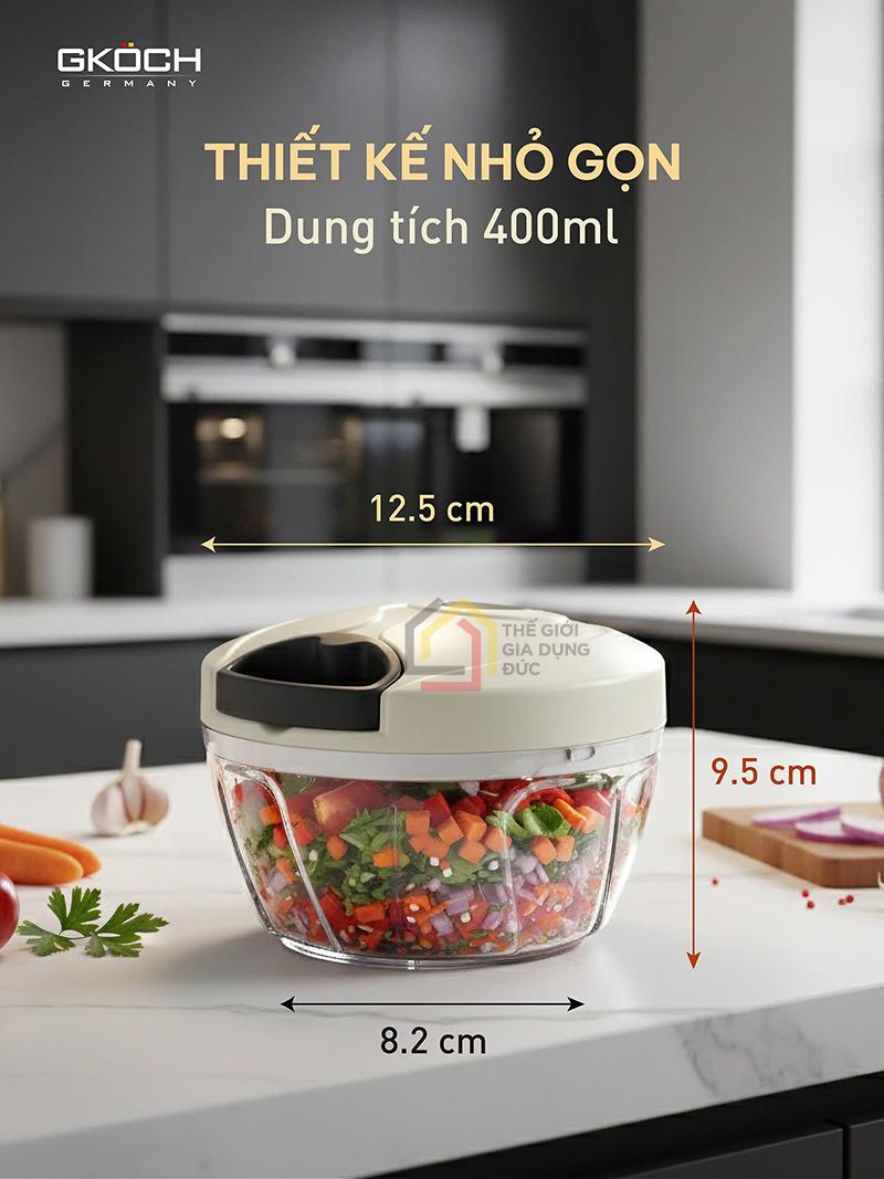 - Tên sản phẩm: Dụng cụ xay tỏi ớt GKÖCH 400ml