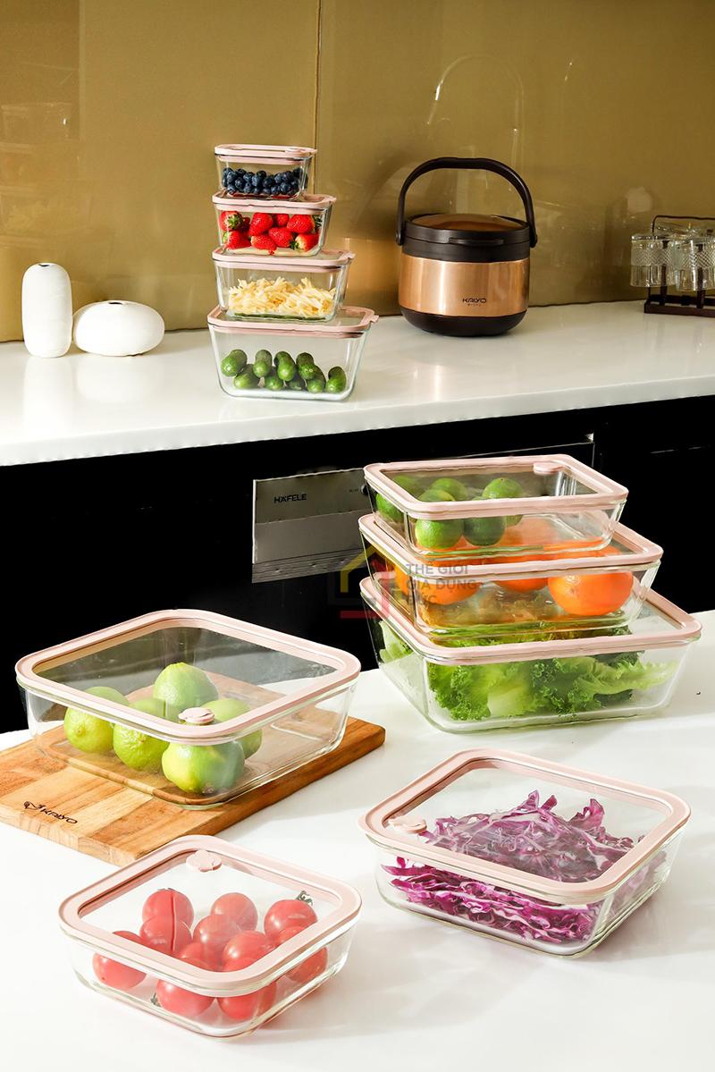 Hộp thủy tinh chịu nhiệt hình chữ nhật dáng sâu Kaiyo