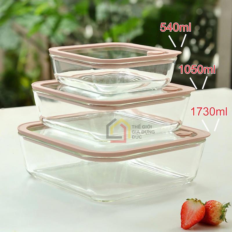 Hộp thủy tinh chịu nhiệt hình vuông Kaiyo 1050ml