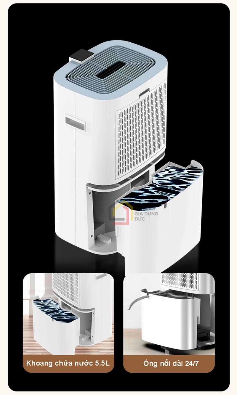 - Bình chứa lớn 5.5L + ống thoát nước trực tiếp.