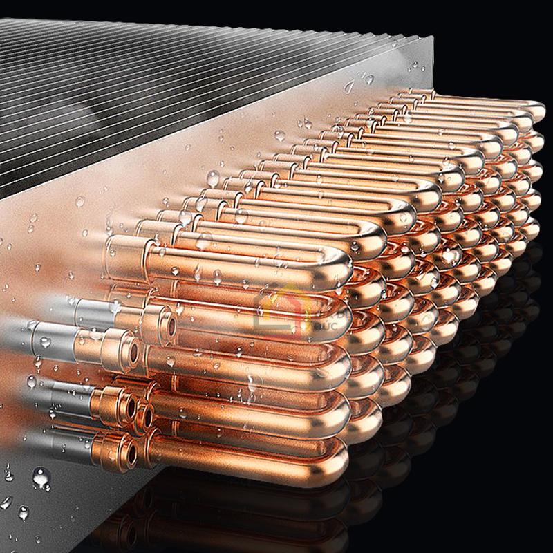 – Hệ dàn đồng 2+2 nguyên chất: Cấu tạo bằng đồng nguyên chất kết hợp tấm nhôm gia cường, tăng khả năng dẫn nhiệt, đảm bảo tuổi thọ cao và vận hành bền bỉ lâu dài.