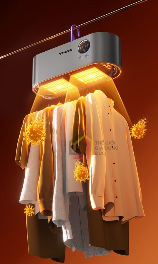 Máy sấy quần áo Tiross TS8832 ứng dụng công nghệ sấy nhanh kết hợp chức năng diệt khuẩn và mạt bụi hiệu quả đến 99.99%. Nhờ vậy, quần áo không chỉ khô ráo mà còn sạch khuẩn, an toàn cho sức khỏe người sử dụng. Đây là một trong những điểm mạnh giúp sản phẩm trở thành lựa chọn hàng đầu trong phân khúc.