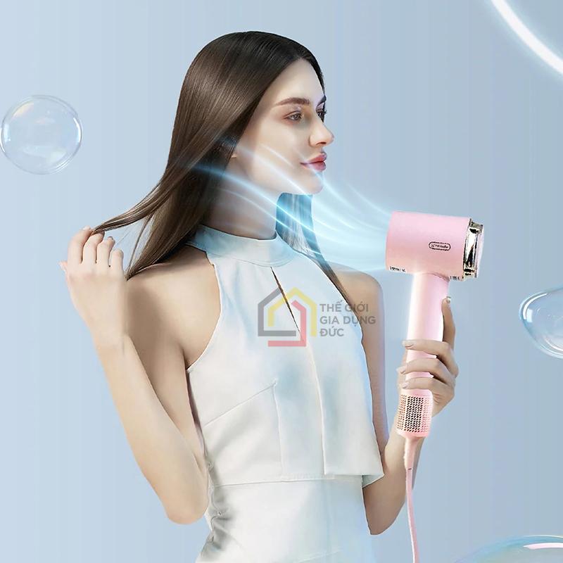 Công nghệ ion âm giúp khóa ẩm sâu bên trong từng sợi tóc, tăng độ ẩm lên 19,9% và cải thiện độ đàn hồi tới 36,5%. Nhờ đó, tóc luôn mềm mượt, bóng khỏe, hạn chế tối đa tình trạng xơ rối, gãy rụng. Cơ chế xen kẽ gió nóng – lạnh mỗi 5 giây giúp cố định kiểu tóc, giữ ẩm tự nhiên và giảm hư tổn do nhiệt.