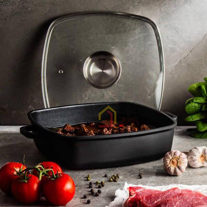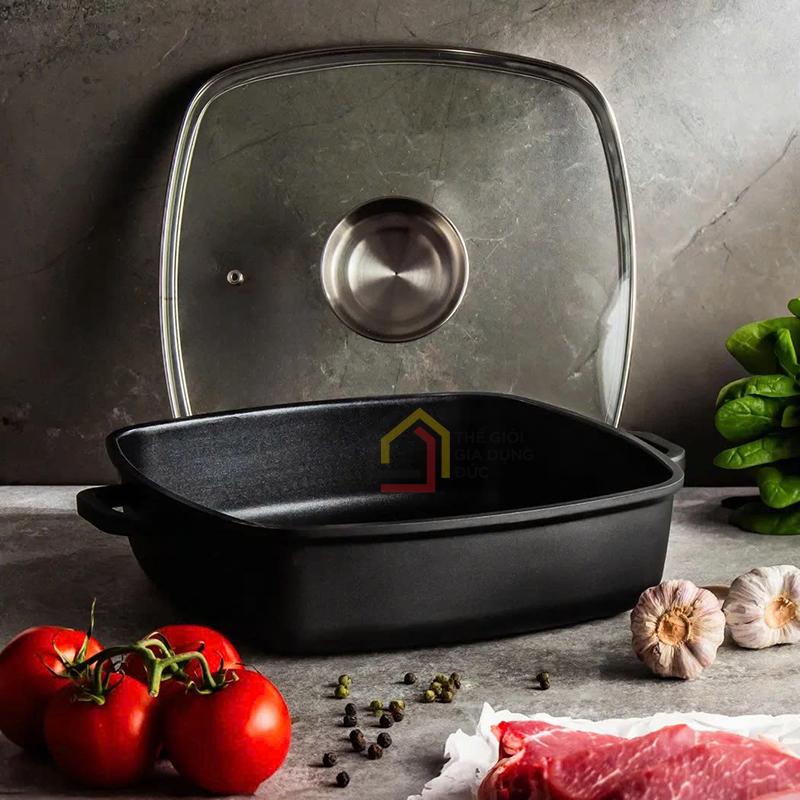 Sản phẩm được chế tác từ nhôm đúc nguyên khối cao cấp, có khả năng giữ nhiệt và phân phối nhiệt nhanh, giúp thực phẩm chín đều và tiết kiệm năng lượng.
