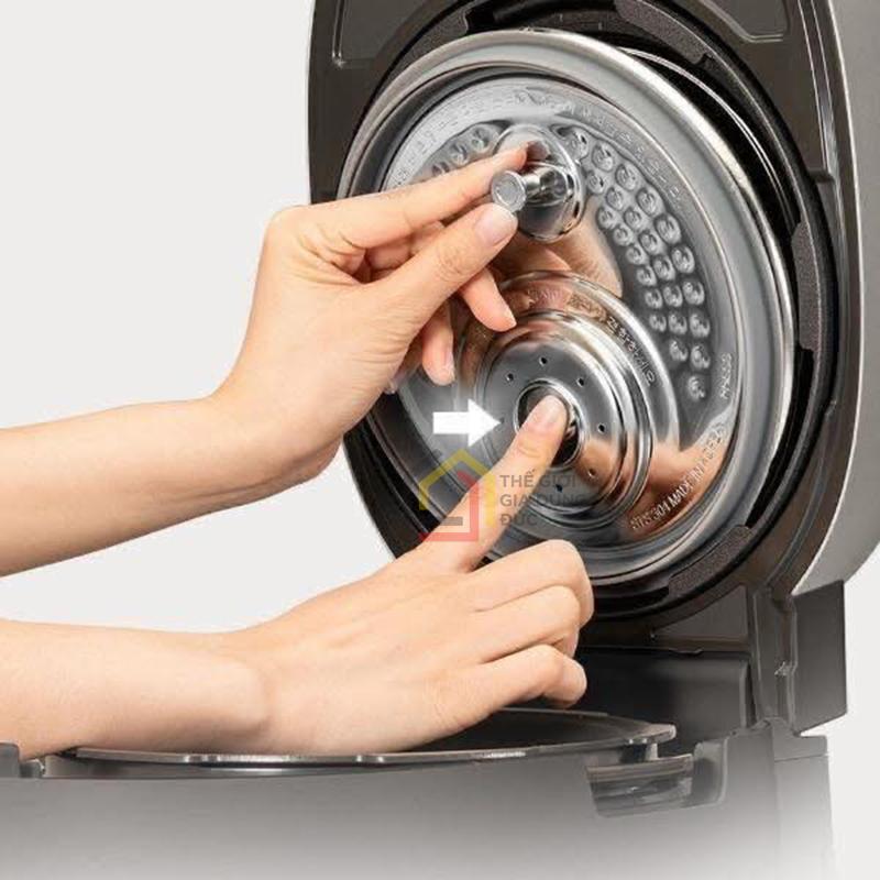 Hệ thống áp suất yên tĩnh với độ ồn chỉ khoảng 36.9 dB, đảm bảo không gây ảnh hưởng đến sinh hoạt gia đình. Nắp thoát hơi thiết kế chữ S giúp kiểm soát hơi nước hiệu quả, tăng độ an toàn khi sử dụng.