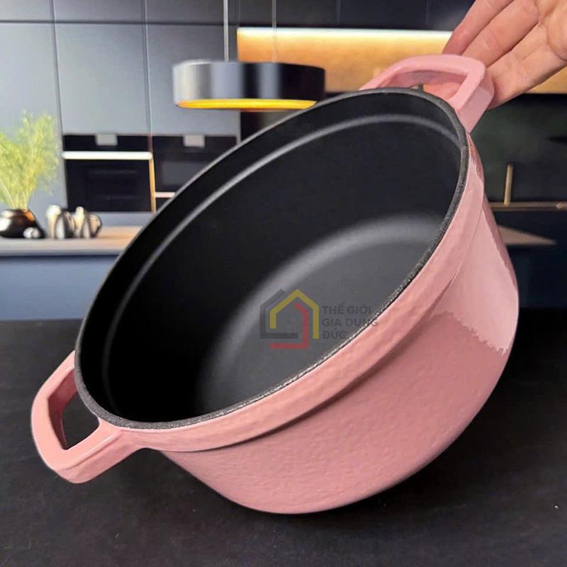 Nồi gang Moos nổi tiếng với khả năng giữ nhiệt cực lâu, giúp món ăn chín đều, thơm ngon và đậm vị hơn. Chất liệu gang nguyên khối bền bỉ đảm bảo tuổi thọ lâu dài, chịu nhiệt tốt và phù hợp cho các món nấu, hầm, chiên, nướng.