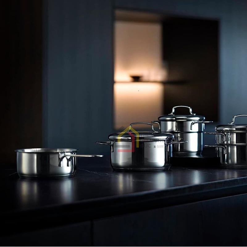 - Nồi WMF phù hợp với mọi loại bếp – kể cả bếp từ. Đế đa năng TransTherm: Cấu trúc đế được cấp bằng sáng chế với khả năng phân phối nhiệt đều và thời gian dài.