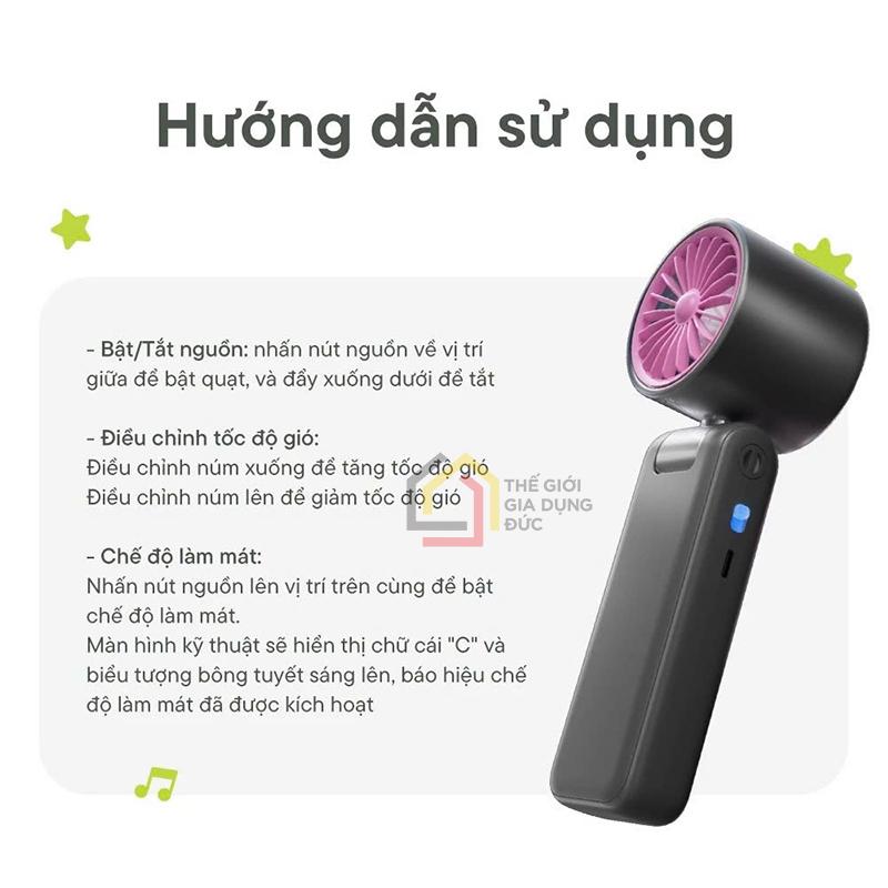Sò lạnh tích hợp có khả năng hạ nhiệt bề mặt chỉ trong tích tắc, kết hợp với luồng gió mạnh tạo cảm giác như mang theo “máy lạnh mini” trong tay. Dù ở văn phòng, ngoài trời hay trên phương tiện di chuyển, bạn vẫn luôn được làm mát hiệu quả và nhanh chóng.