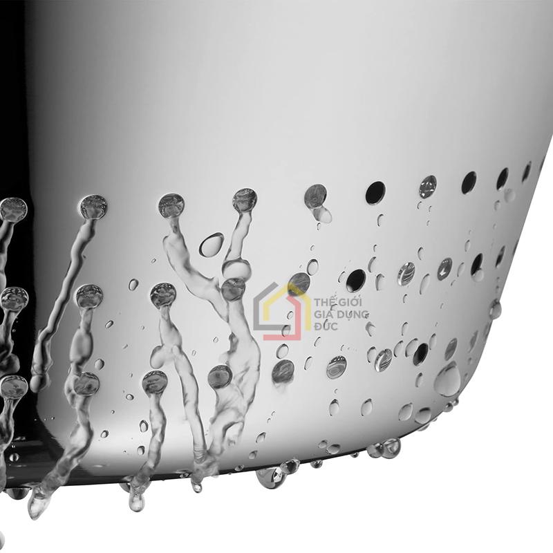 Các lỗ thoát nước được bố trí hợp lý giúp rau củ, mì, pasta hoặc trái cây nhanh chóng ráo nước, tiết kiệm thời gian trong quá trình sơ chế thực phẩm.