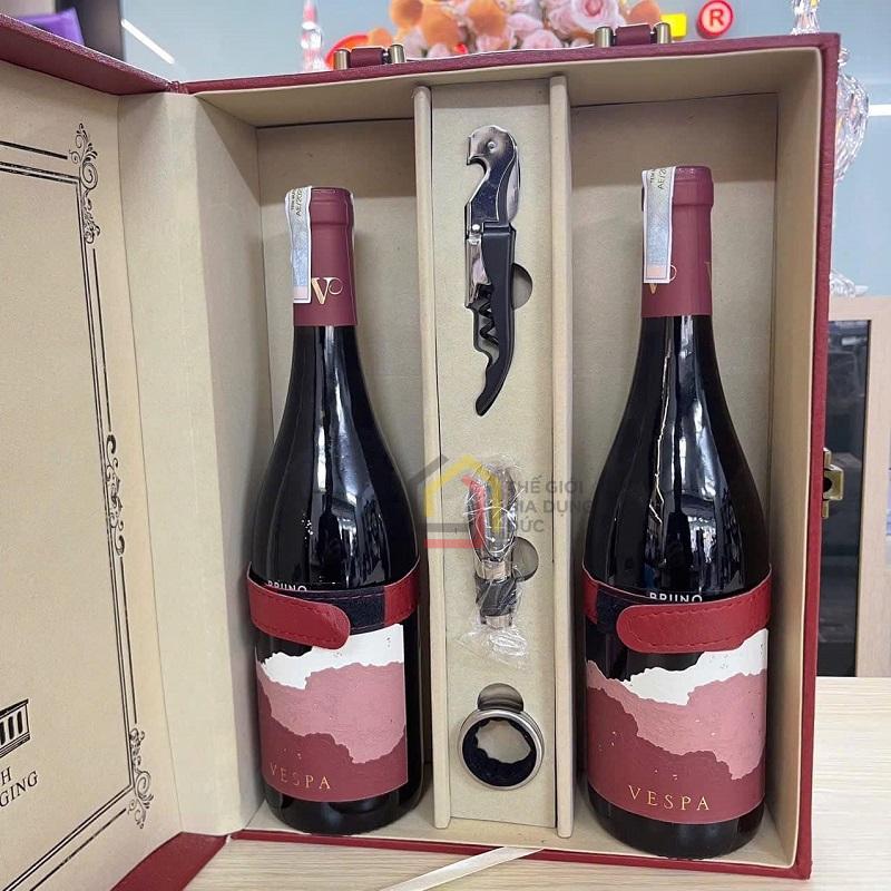 Chai vang Bruno Vespa nổi bật với sắc ruby đậm cuốn hút, nhãn chai tinh tế và lịch lãm. Set 2 chai kèm hộp giả da được thiết kế trang nhã, phù hợp làm quà biếu Tết cho đối tác, người thân và bạn bè, thể hiện sự chỉn chu và đẳng cấp của người tặng.